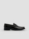 Frank Bruce is a penny loafer in sleek black, showcasing a classic silhouette that embodies timeless style and elegance.